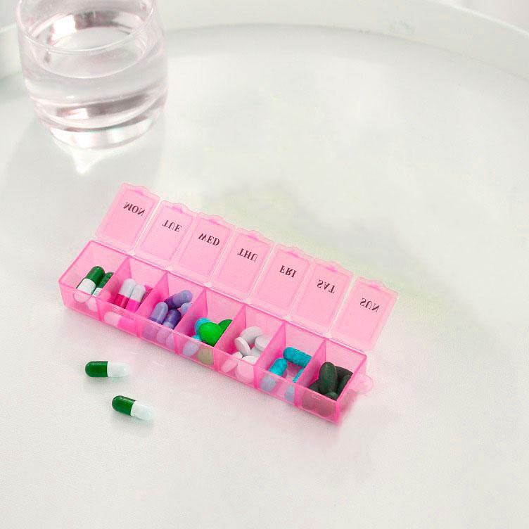 Не допускайте застудності та зробіть процес керування вашими медикаментами простішим і зручнішим із нашим органайзером для таблеток на тиждень у рожевому виготовленні.