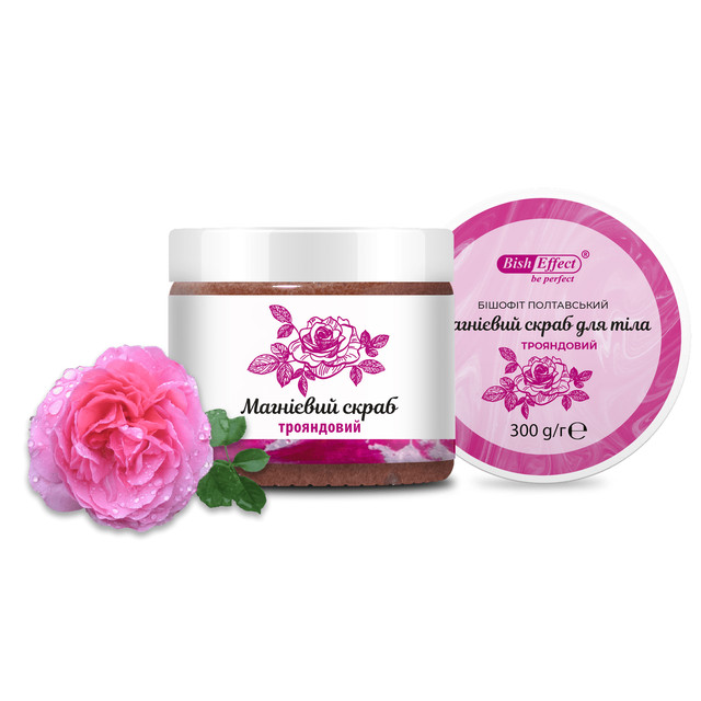 Відкрийте для себе силу природи з магнієвим скрабом на основі бішофіту й екстракту троянди. Цей багатофункціональний засіб поєднує м'яке очищення з насиченням шкіри важливими мінералами, сприяючи її оздоровленню та відновленню. Бішофіт — природне джерело магнію — глибоко проникає в шкіру, покращує клітинний обмін і сприяє зняттю втоми, а рожевий екстракт дарує шкірі тонкий аромат і бархатистість.