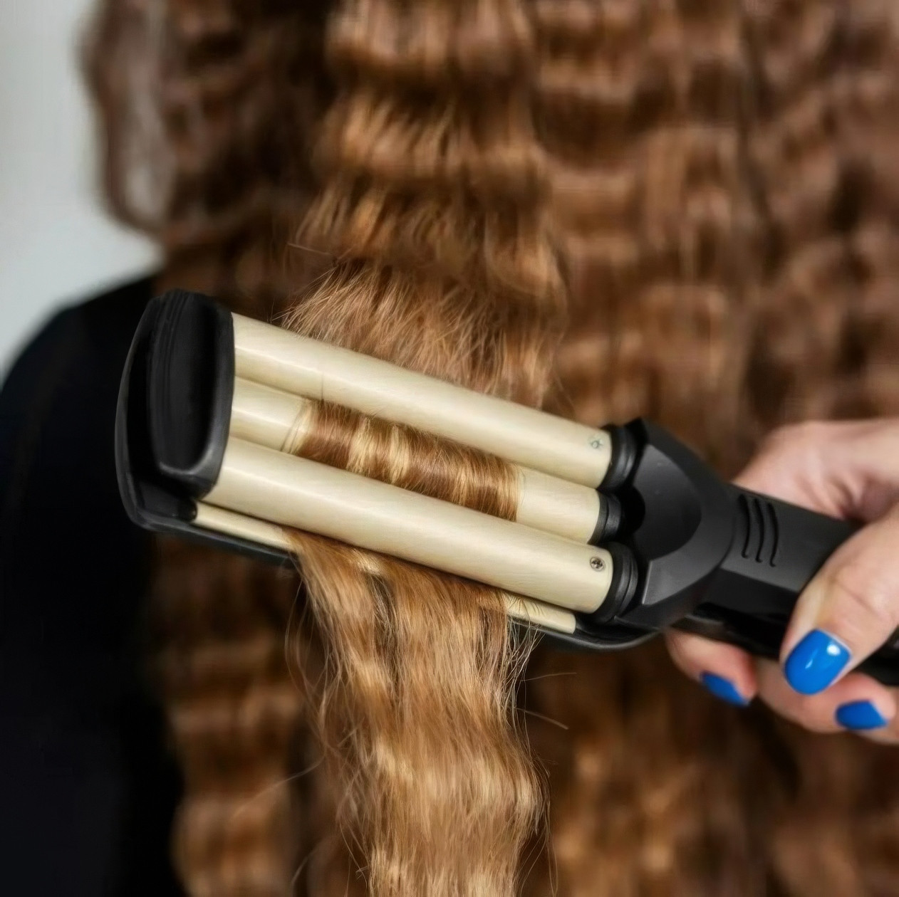 Потрійна плойка для волосся 55 W "Kemei KM-2022" Чорно-золотий — ідеальний інструмент для створення розкішних локонів і хвиль.